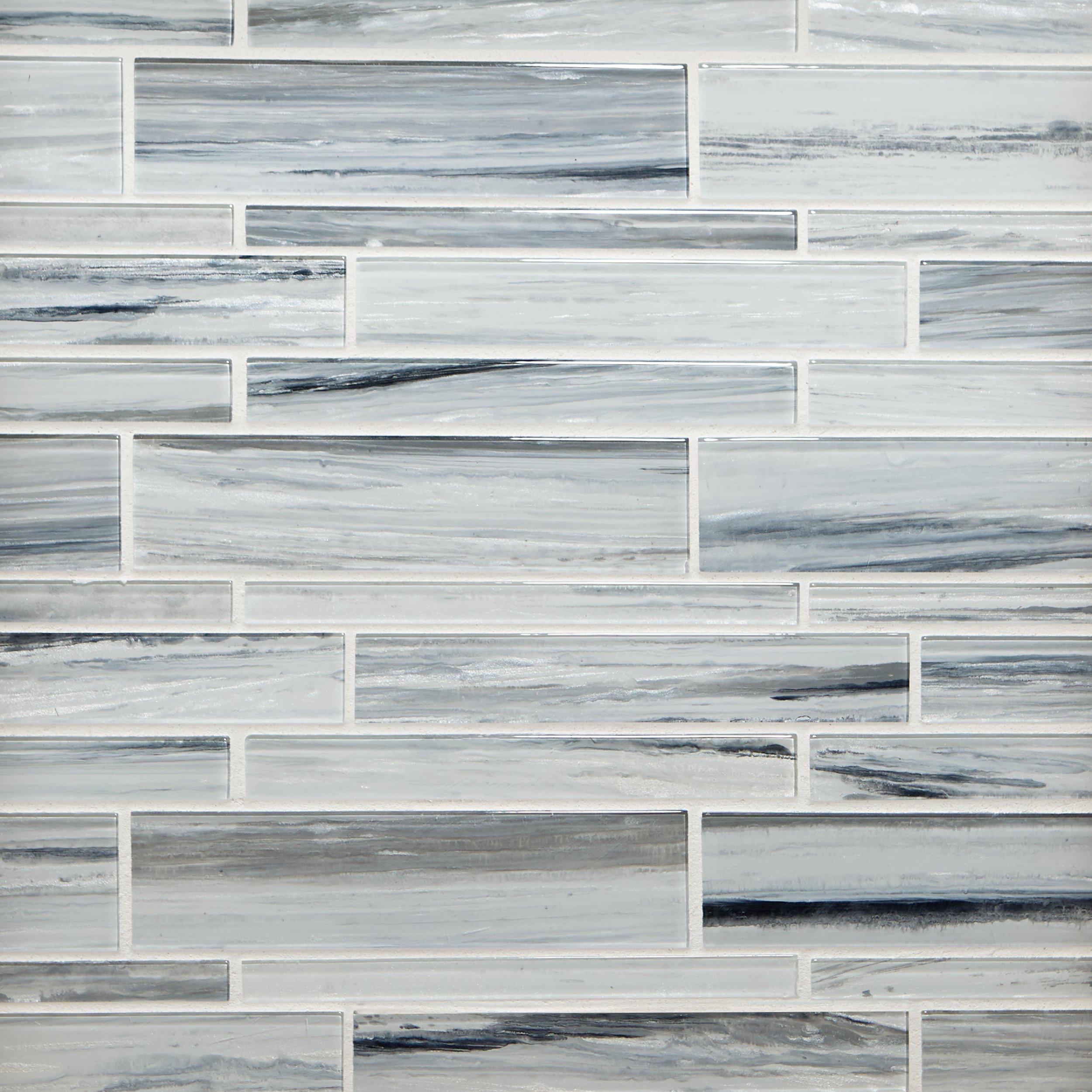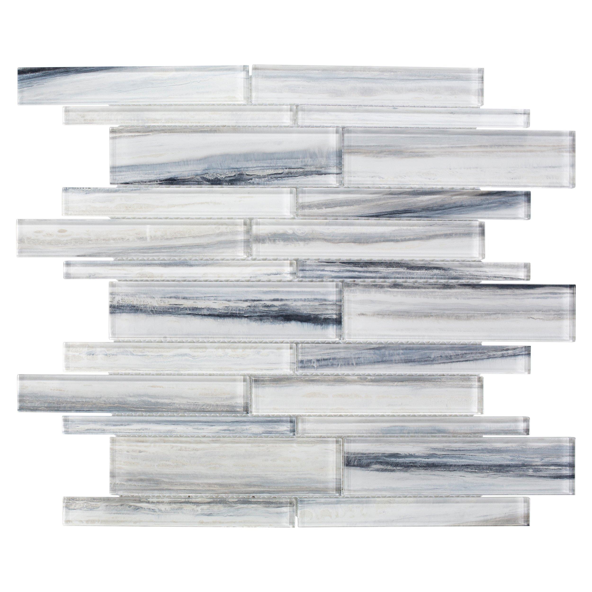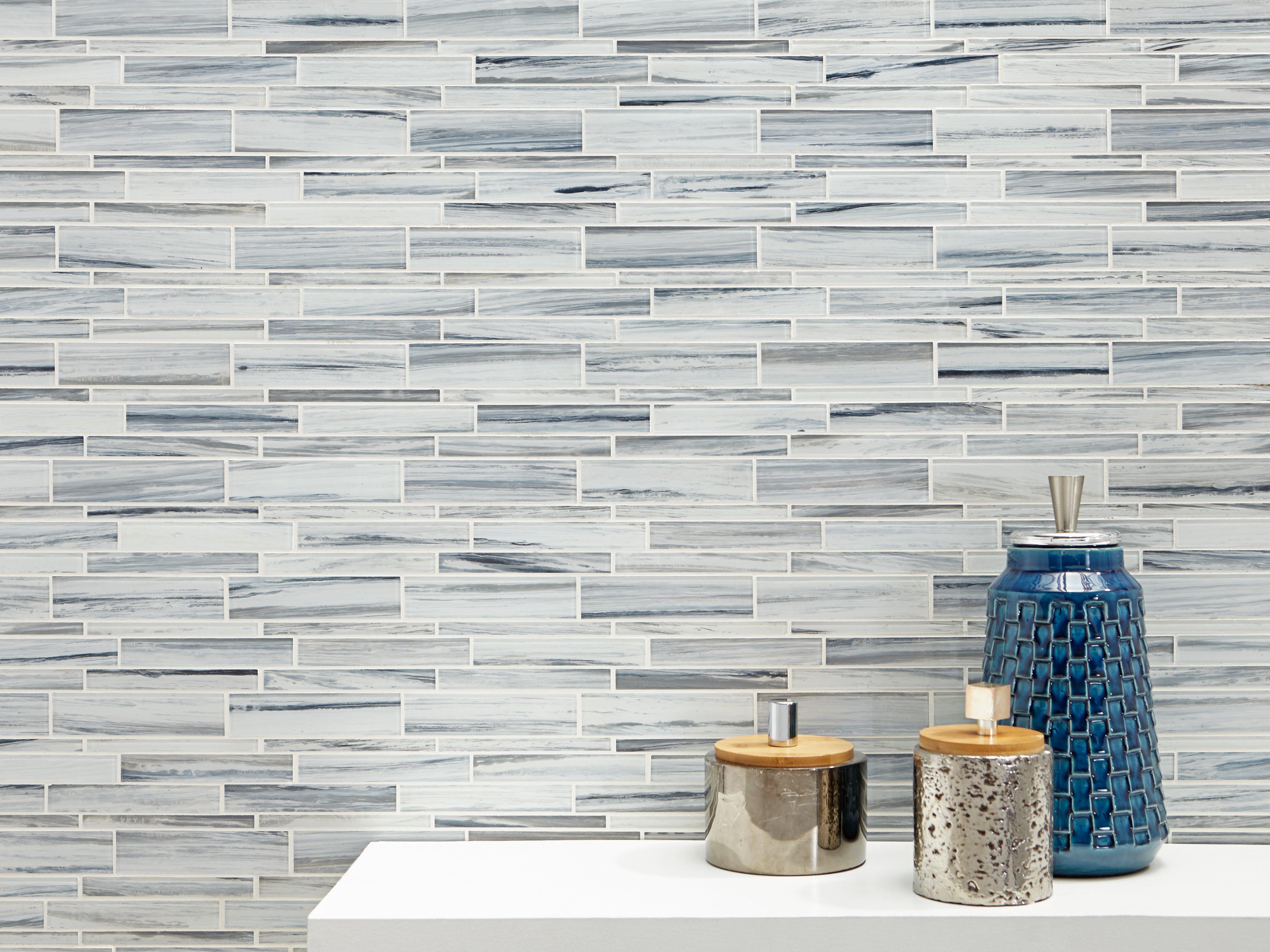 Liven up any room with this linear 12 x 12 Misty Fjord Linear Glass Mosaic in blue.